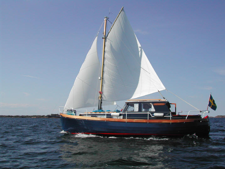 Hon är gaffelriggad.Hela skrovet är isolerat med skum.