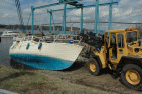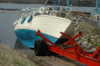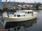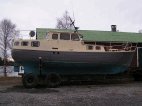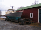 Transporten från Vaxholm till Sundsvall (Alnön) slutade med lite krångel. Båten gled av vagnen och hamnade riktigt på sned.Nu visade sig Tunakryssaren från sin starka sida, inte en skråma på båten, bara att knuffa ut den i vattnet igen och börja om.